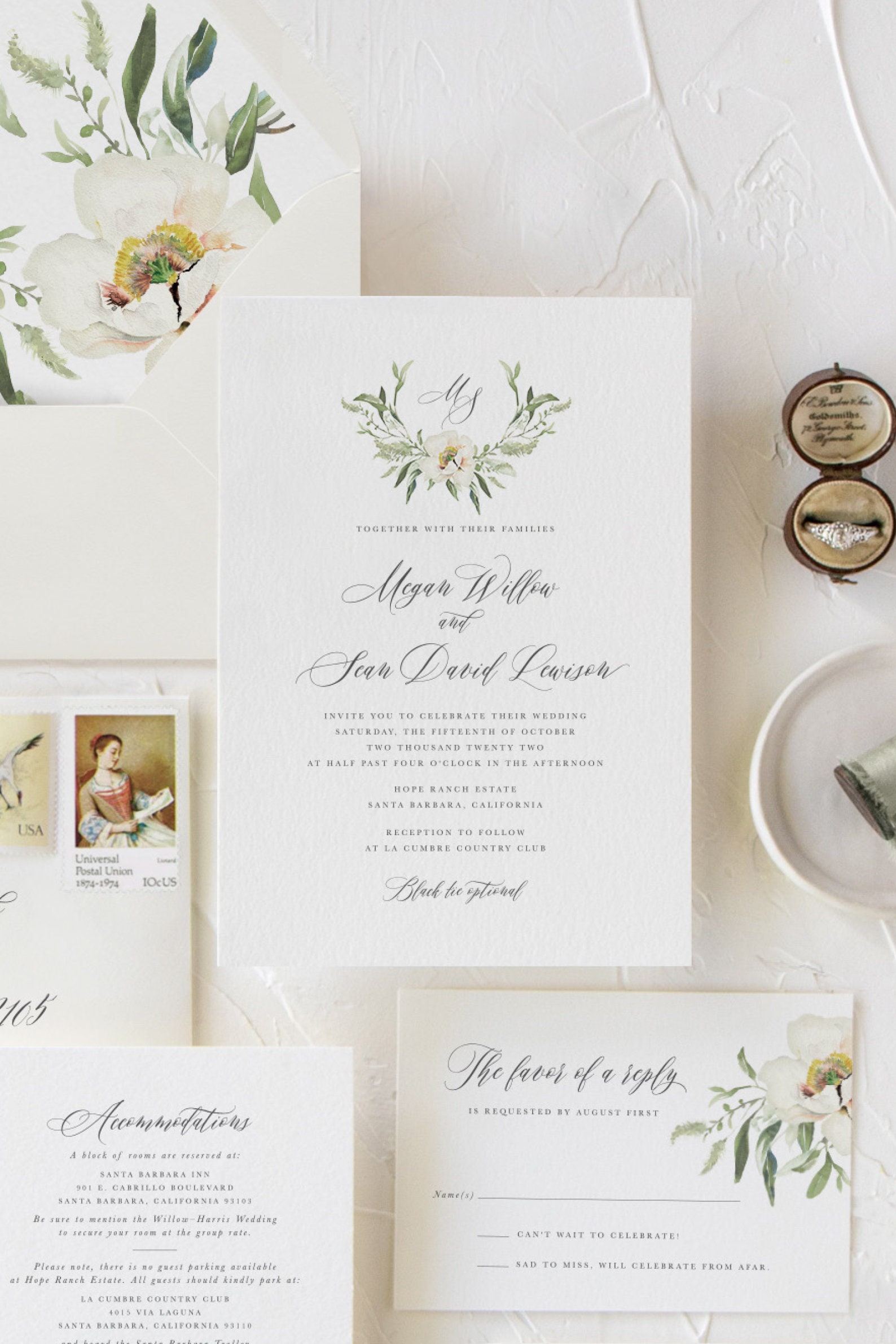 Watercolor Greenery Wedding Invitation White Poppy Peony Etsy